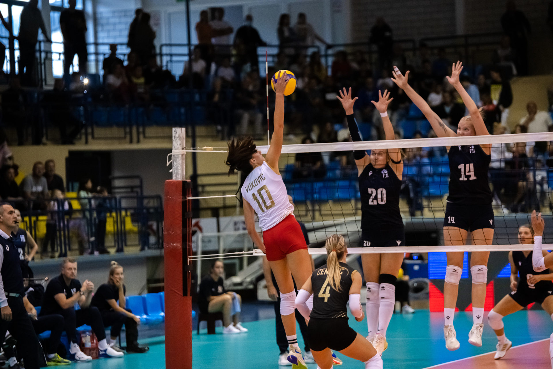 Suomen keskipelaajat Roosa Laakkonen ja Netta Rekola keräsivät komeat 32/+27 tehot vain yhdellä hyökkäysvirheellä ja yhteen torjuntaan päätymisellä. Suvi Kokkonen oli joukkueen paras pistenainen 22/+14.